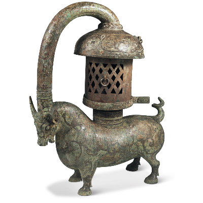 错银铜牛灯为东汉青铜器,1980年出土于江苏邗江县甘泉2号东汉墓。汉代青铜灯具中实用、科技与艺术完美结合的顶尖之作,其环保意识和设计领先西方国家一千多年。